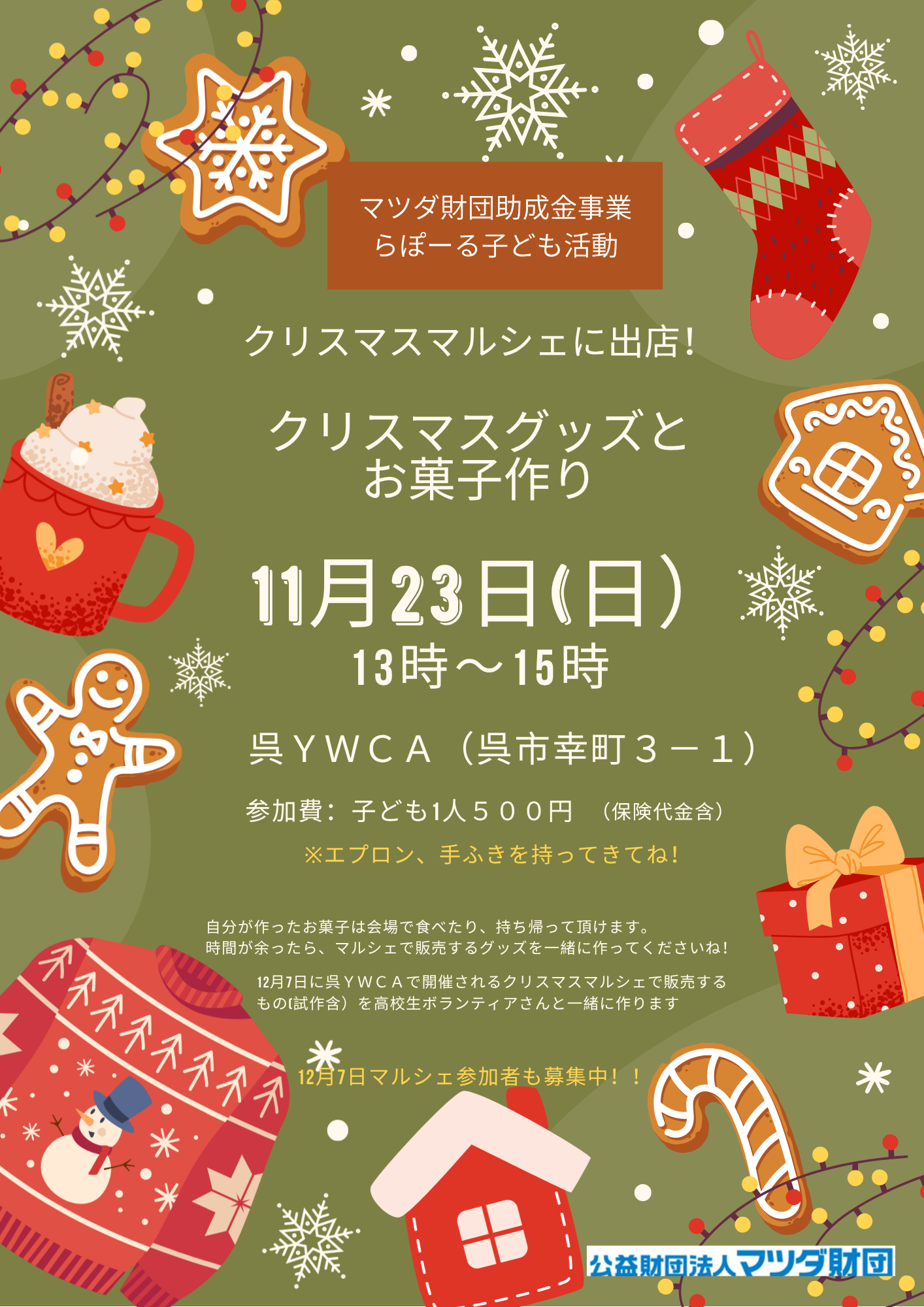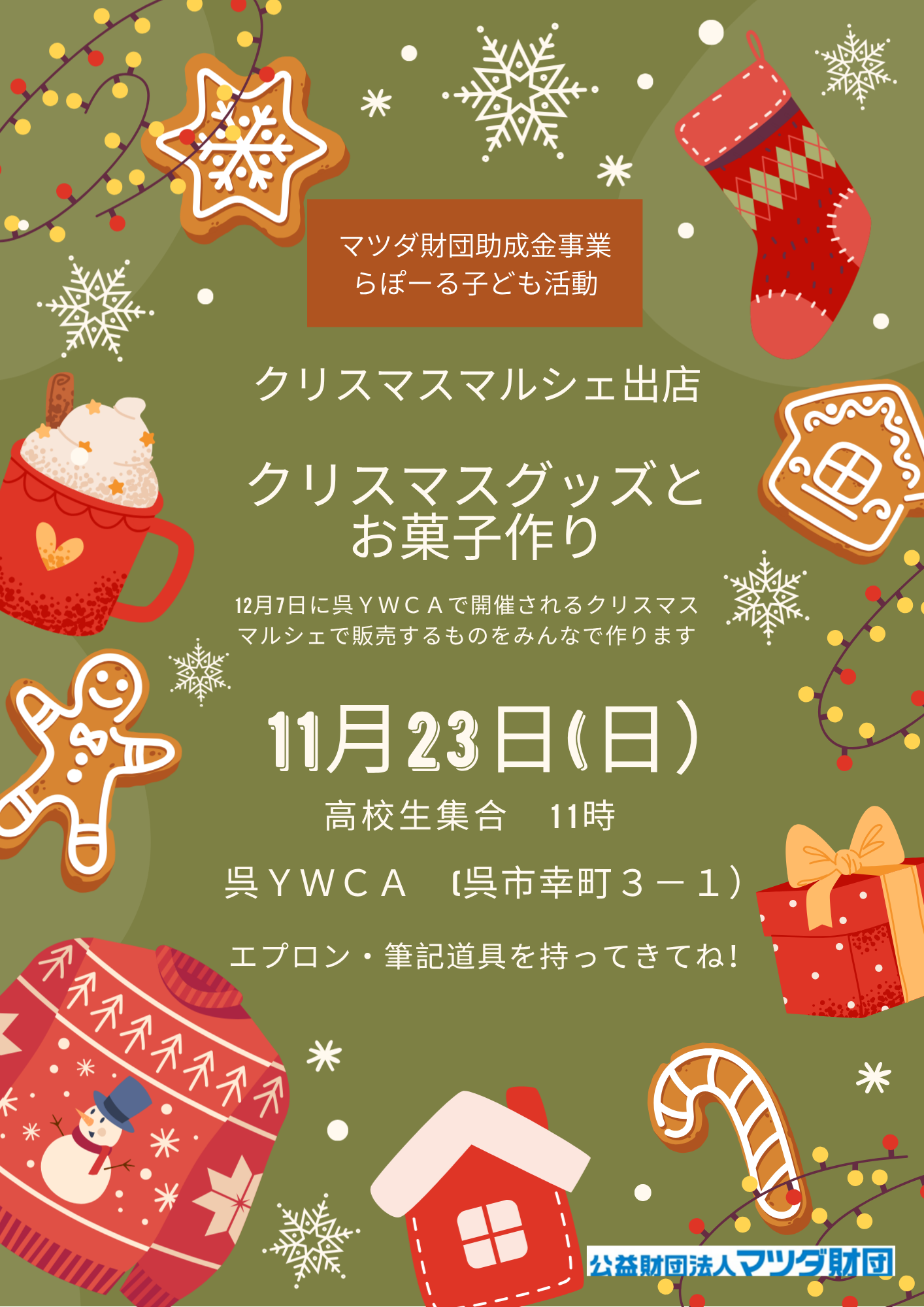 ★ 特定非営利活動法人らぽーる からイベント「クリスマスグッズとお菓子作り」(11月23日開催)のお知らせです。詳しくはこちら!高校生ボランティア募集はこちら!